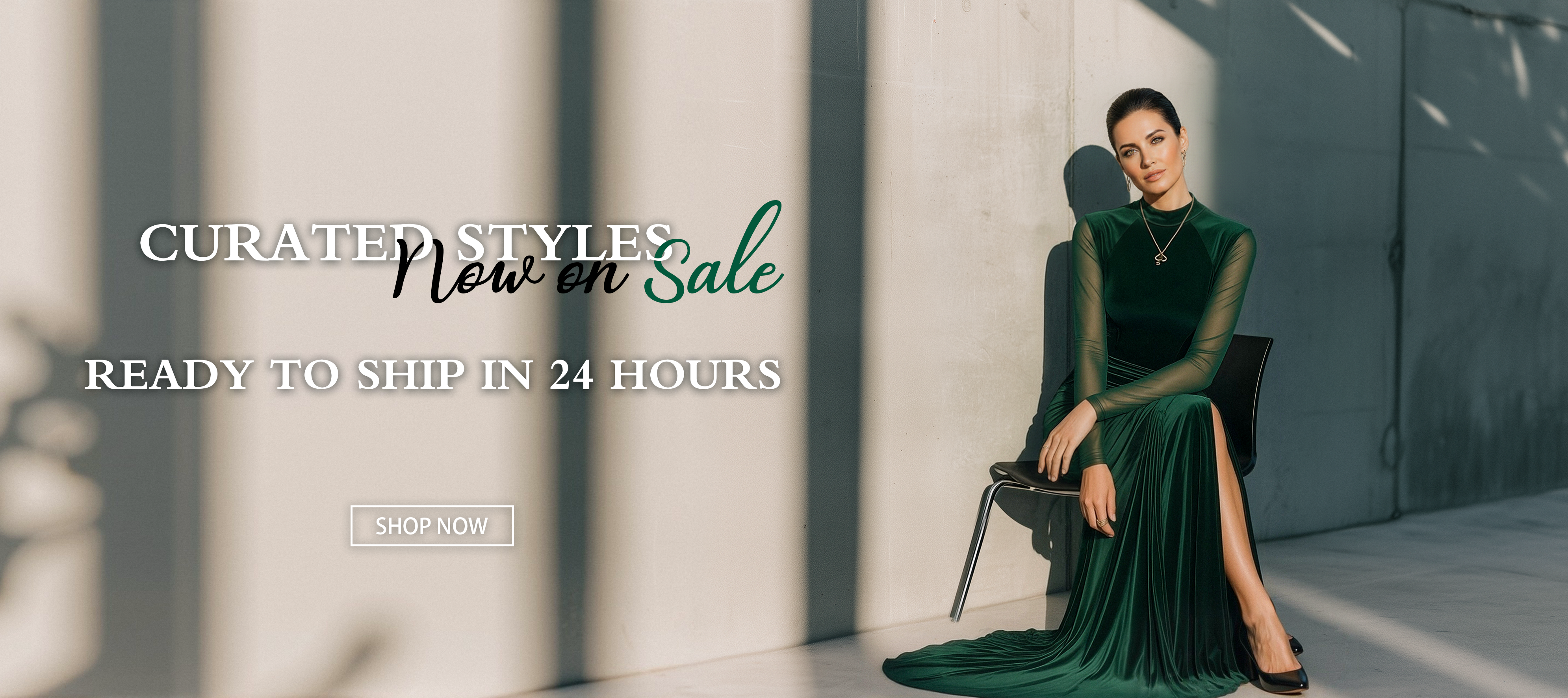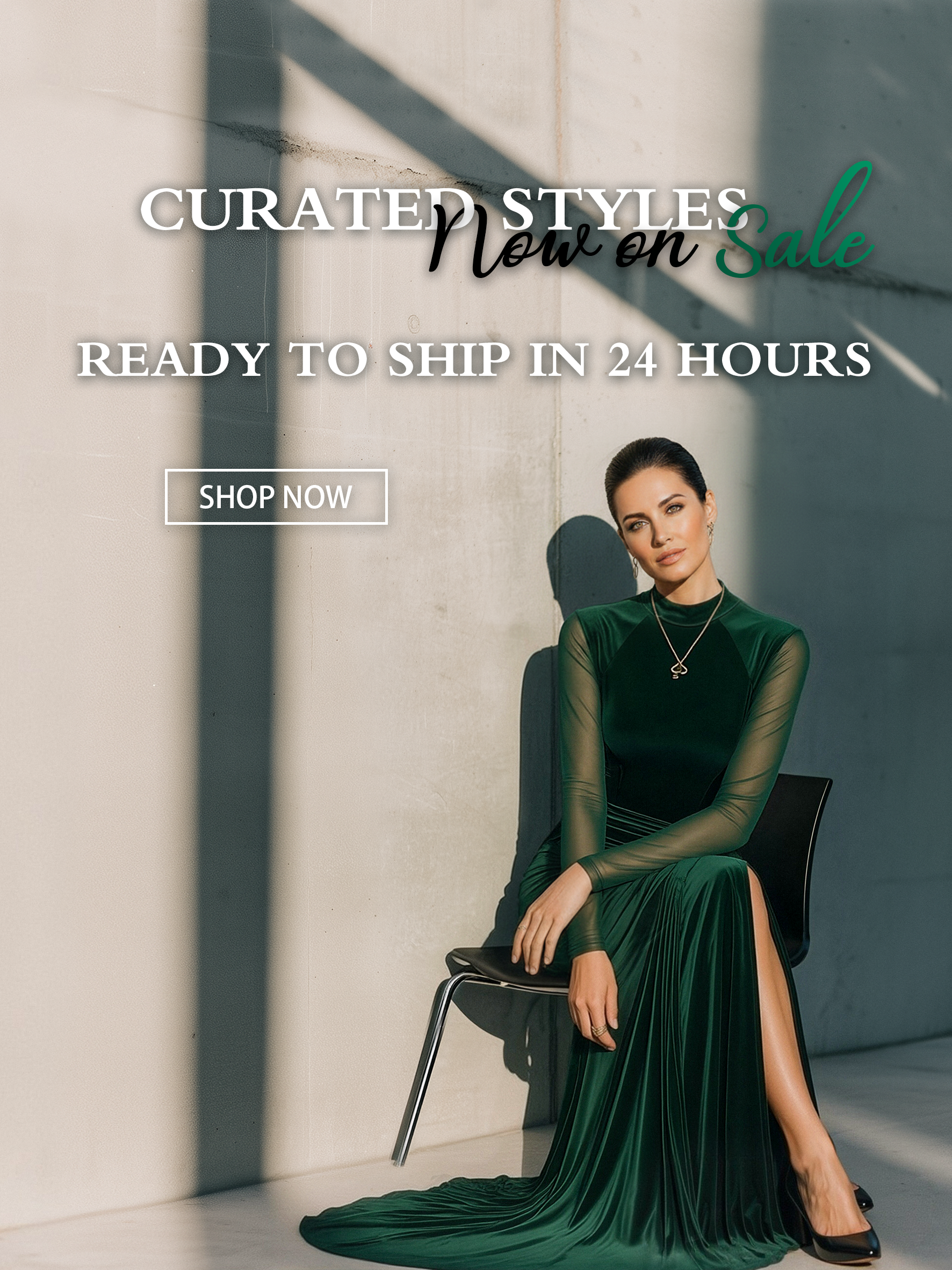24-Hour-Shipping Emerald Green Velvet Mesh Sleeve High Slit Maxi Dress