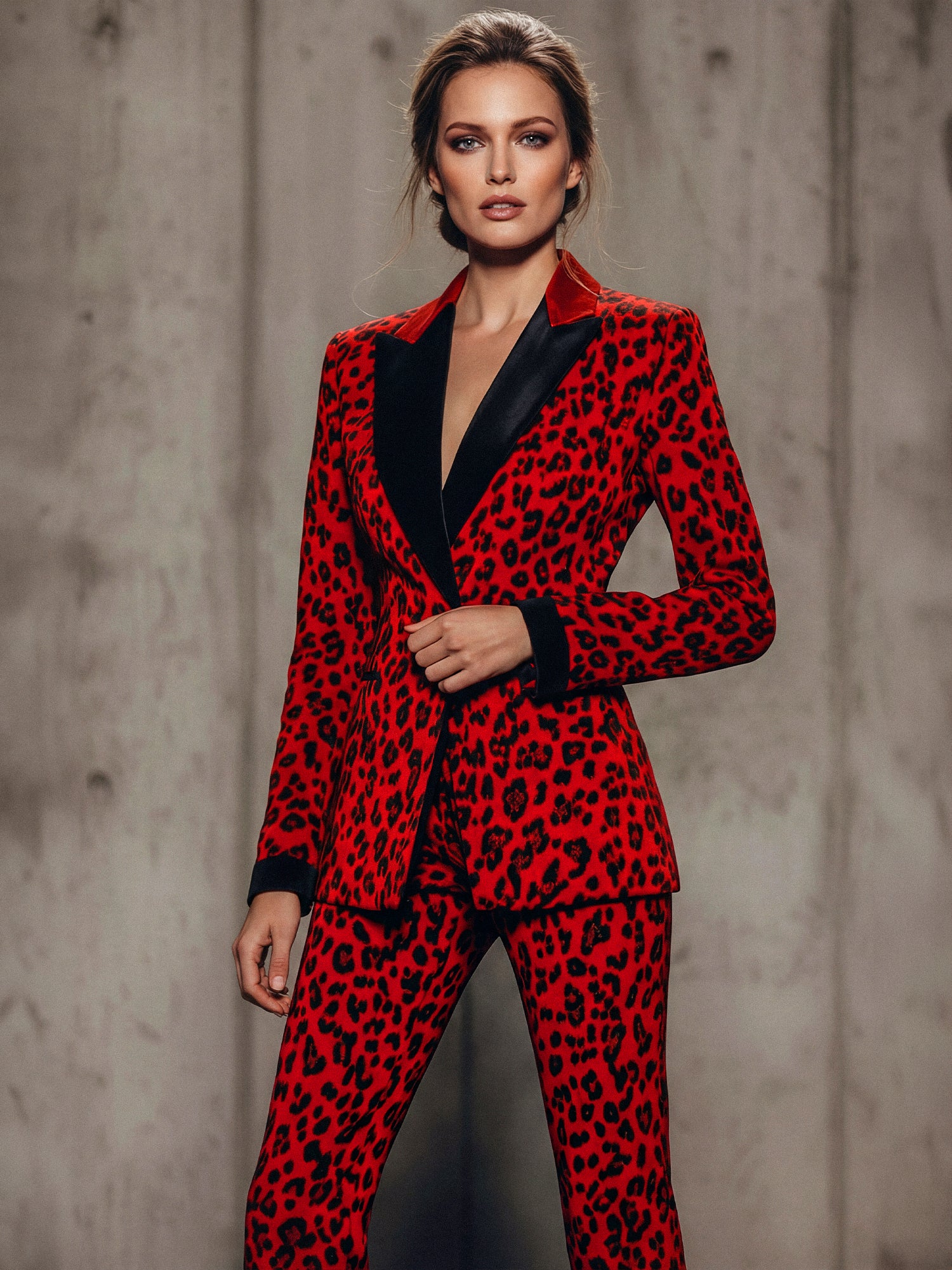 24-Hour-Shipping Striking Red Leopard Print Suit