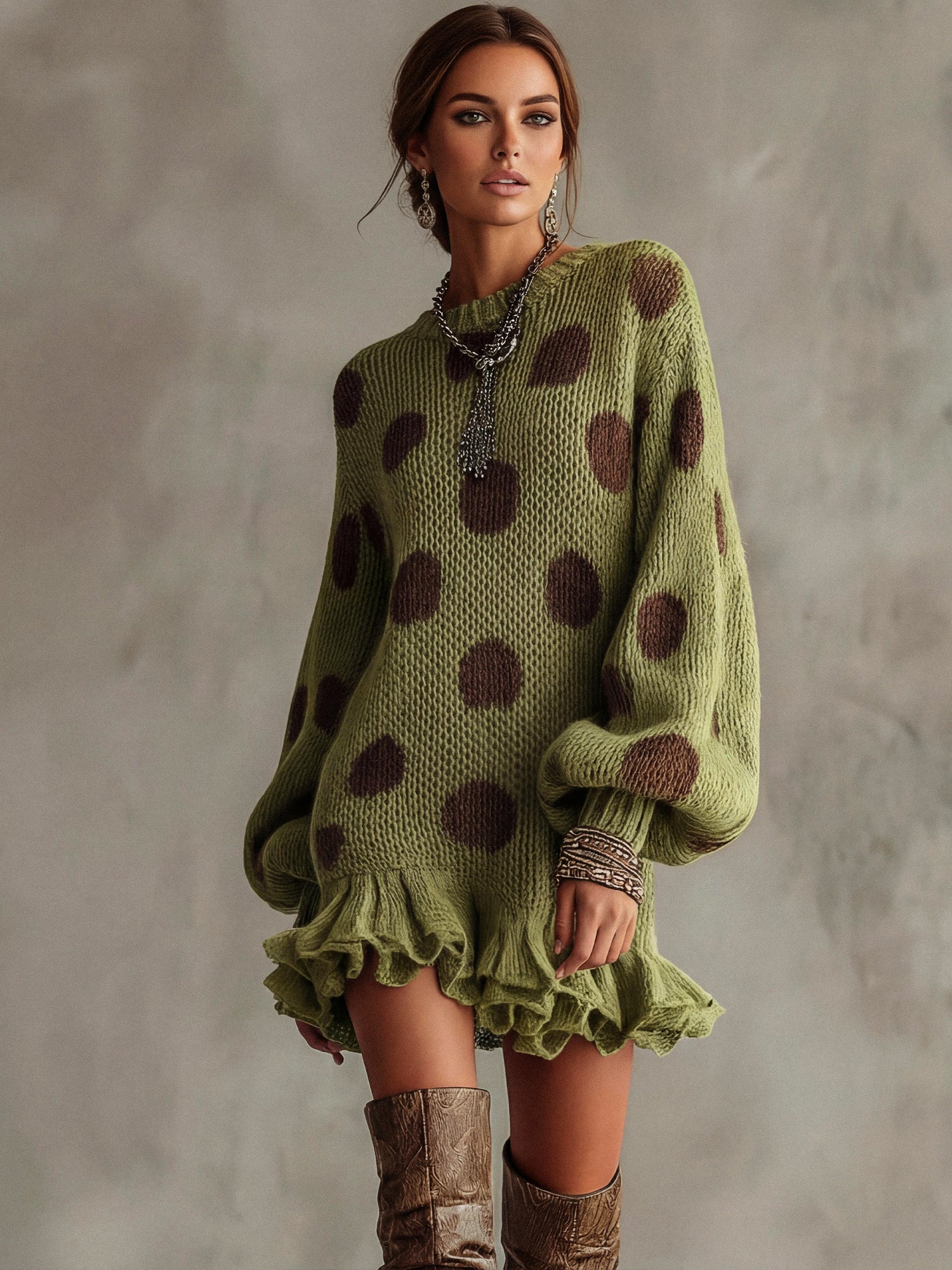 Brown Ombre Knit Lace Oversized Long Sleeve Mini Dress